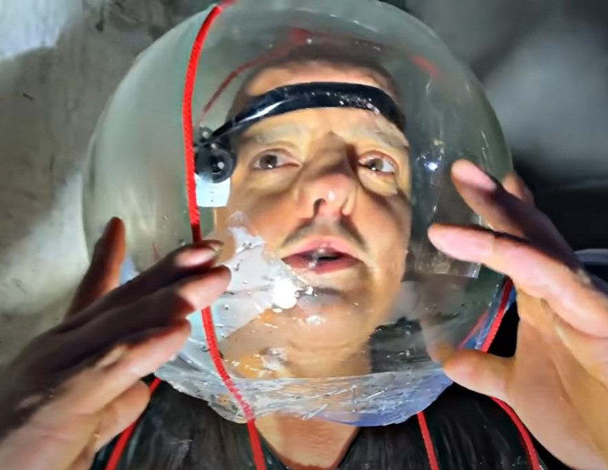 Despite the murky conditions and limited visibility, the diver attempted to explore the eerie underwater area, only to find nothing visible due to the muddiness. He described the dive as feeling “like space” with strange “animals” at the bottom. When the diver tried to go deeper, the helmet filled with water, forcing him to return to the surface. The makeshift suit surprisingly kept him warm, despite being a last-minute creation.